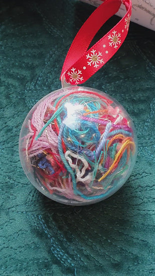 Unique, re-usable Christmas bauble decorations, filled with the ends of a variety of yarns I have used to make orders and designs over the last 12 months. These plastic re-fillable baubles come stuffed with colourful ends to make your Christmas Tree curiously, sustainably, decorated in a unique and individual style.